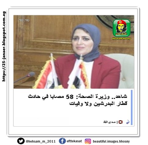 وزيرة الصحة: 58 مصابا في حادث قطار البدرشين ولا وفيات