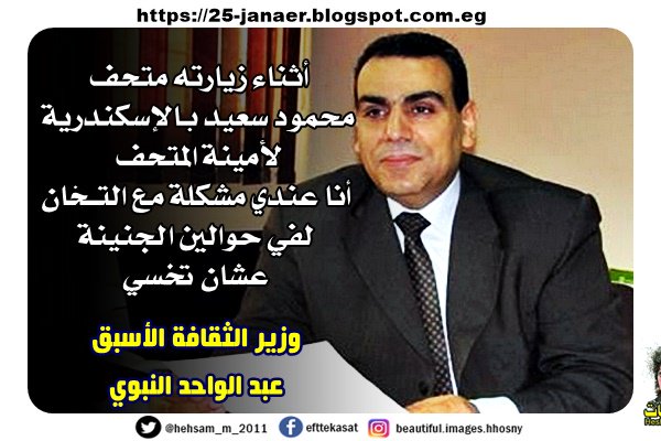 وزير الثقافة الأسبق عبد الواحد النبوي -=- أثناء زيارته متحف محمود سعيد بالإسكندرية لأمينة المتحف أنا عندي مشكلة مع التخان لفي حوالين الجنينة عشان تخسي