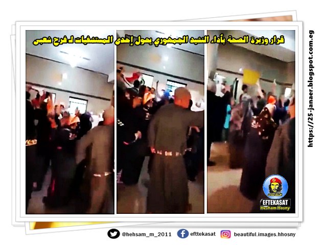 وتعرض "بوابة المواطن" فيديو لتحول المرضى والأطباء والزائرين لإحدى المستشفيات من وقوفهم انتباه أثناء سماعهم للسلام الجمهورى إلى حلقة رقص شعبى كبيرة، حيث قام هؤلاء الأشخاص بالرقص الشعبى المثير من الرجال والنساء والفتيات فى داخل هذه المستشفى.