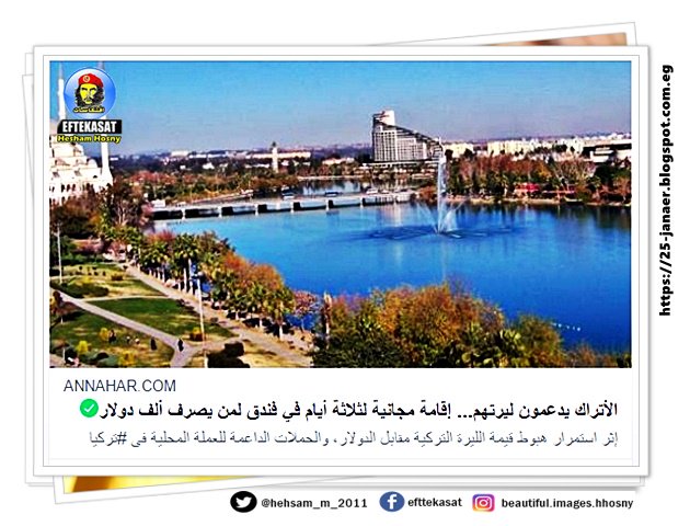 الأتراك يدعمون ليرتهم أعلن أحد الفنادق في ولاية أضنة إقامة مجانية لثلاثة أيام في الفندق لمن يصرف ألف دولار
