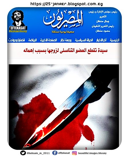 جريدة المصريون “سيكوسيكو” -=- سيدة تقطع العضو التناسلى لزوجها بسبب إهماله -=-