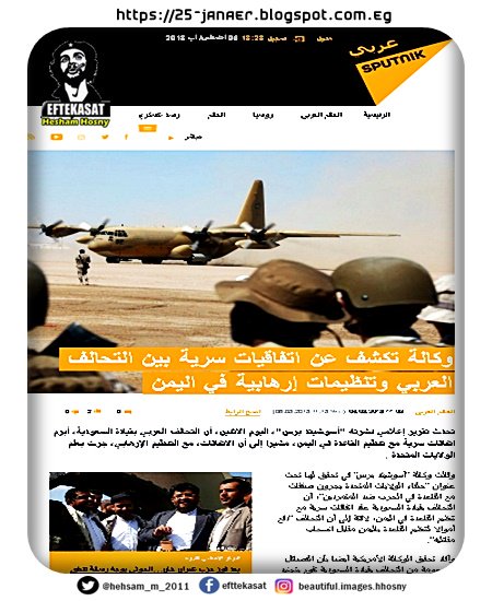 تحدث تقرير إعلامي نشرته "أسوشيتد برس"، اليوم الاثنين، أن التحالف العربي بقيادة السعودية، أبرم اتفاقات سرية مع تنظيم القاعدة في اليمن، مشيرا إلى أن الاتفاقات، مع التنظيم الإرهابي، جرت بعلم الولايات المتحدة .
