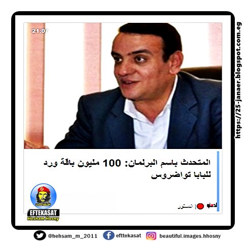 صلاح حسب الله، المتحدث باسم البرلمان: 100 مليون باقة ورد للبابا تواضروس على حديثه الوطني والرائع عن مصر خلال زيارته الحالية لامريكا