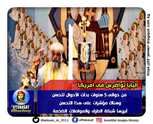 البابا تواضرس فى امريكا من حوالى 5 سنوات بدأت الأحوال تتحسن وهناك مؤشرات على هذا التحسن أبرزها شبكة الطرق والمواصلات الضخمة
