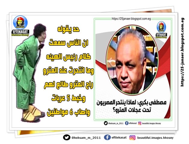 حد يقوله ان الناس سمعت كلام رئيس الهيئه وما انتحرت عند المترو راح المترو طالع لهم وخبط ٥ عربات واصاب ٦ مواطنين
