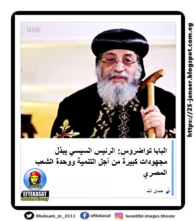 البابا تواضروس: الرئيس السيسي يبذل مجهودات كبيرة من أجل التنمية ووحدة الشعب المصري