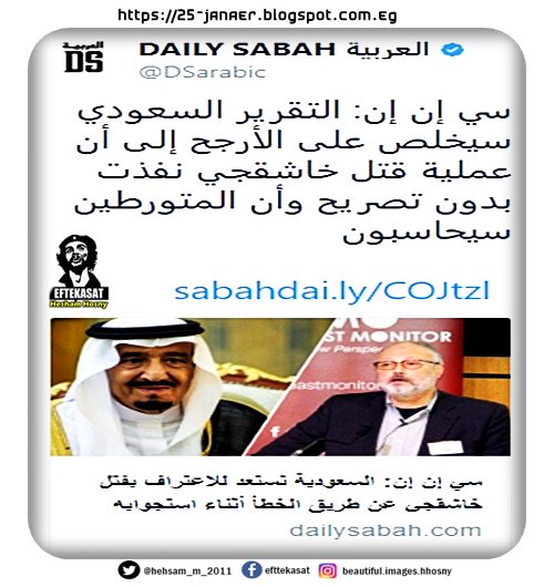 =- سي أن أن نقلاً عن مصدرين دون تسميتهما تقول أن السعودية تحضر تقريراً تقر فيه بمقتل خاشقجي نتيجة خطأ خلال استجواب