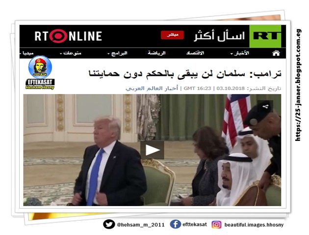 ترمب يقول للملك #سلمان: "لا تستطيع البقاء في السلطة أسبوعين بدون دعمنا" — من يهنْ يسهل الهوان عليه..