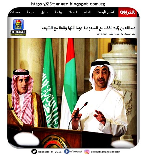 عبدالله بن زايد: نقف مع السعودية دوما لأنها وقفة مع الشرف