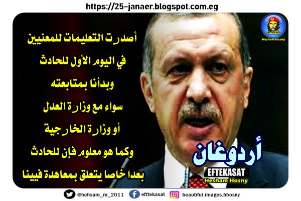 أردوغان أصدرت التعليمات للمعنيين في اليوم الأول للحادث وبدأنا بمتابعته سواء مع وزارة العدل أو وزارة الخارجية وكما هو معلوم فإن للحادث بعدا خاصا يتعلق بمعاهدة فيينا