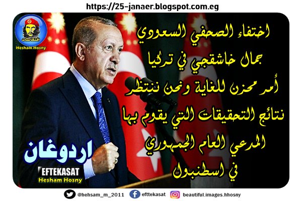 أردوغان : اختفاء الصحفي السعودي جمال خاشقجي في تركيا أمر محزن للغاية ونحن ننتظر نتائج التحقيقات التي يقوم بها المدعي العام الجمهوري في اسطنبول