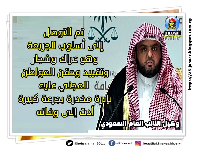 وكيل النائب العام السعودي تم التوصل إلى أسلوب الجريمة وهو عراك وشجار وتقييد وحقن المواطن المجني عليه بإبرة مخدرة بجرعة كبيرة أدت إلى وفاته