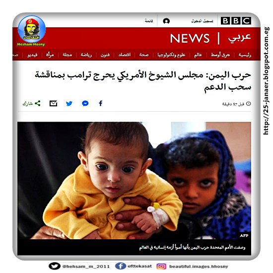 حرب اليمن: مجلس الشيوخ الأمريكي يحرج ترامب بمناقشة سحب الدعم تحرك مجلس الشيوخ نحو إجراء يهدف إلى وقف الدعم العسكري الأمريكي للحرب التي تقودها السعودية في اليمن، في ضربة لترامب. وأعرب كثير من أعضاء مجلس الشيوخ عن استياء من رد فعل ترامب تجاه حادث اغتيال خاشقجي.
