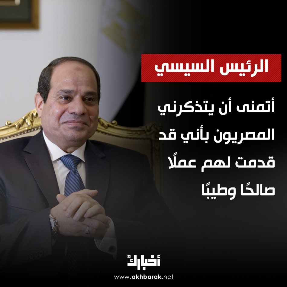 السيسي : "أتمنى أن يتذكرني المصريون بأني قد قدمت لهم عملًا صالحًا وطيبًا"