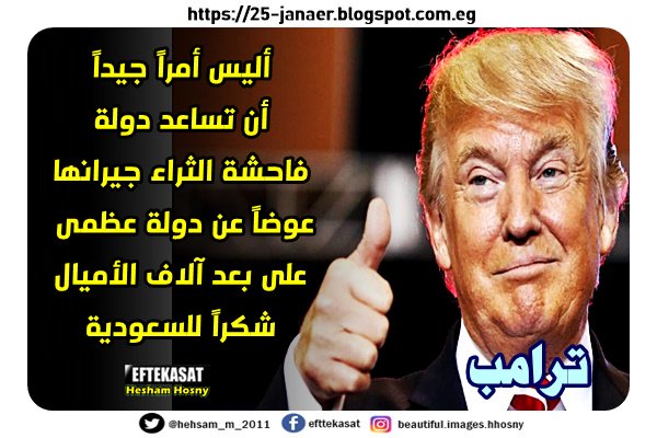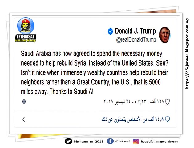 ترامب يقرر للسعودية -=- أليس أمراً جيداً أن تساعد دولة فاحشة الثراء جيرانها عوضاً عن دولة عظمى على بعد آلاف الأميال شكراً للسعودية