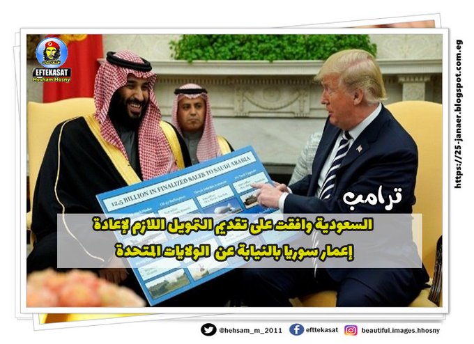 ترامب السعودية وافقت على تقديم التمويل اللازم لإعادة إعمار سوريا بالنيابة عن الولايات المتحدة