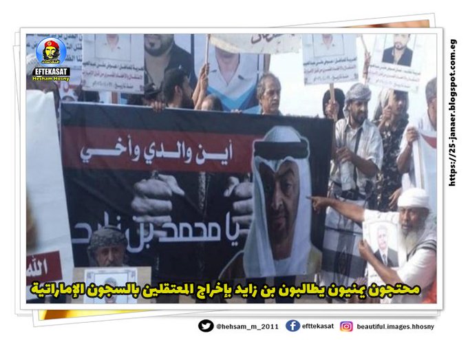 محتجون يمنيون يطالبون #بن_زايد بإخراج المعتقلين بالسجون الإماراتية
