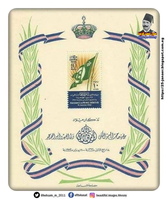 تذكار ميلاد ولي عهد المملكة المصرية و أمير الصعيد أحمد فؤاد ( الملك السابق أحمد فؤاد الثاني ) صادر عن مصلحة المساحة .. 16 يناير 1952