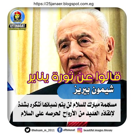 شيمون بيريز مساهمة مبارك للسلام لن يتم نسيانها أشكره بشدة لإنقاذه العديد من الأرواح، لحرصه على السلام