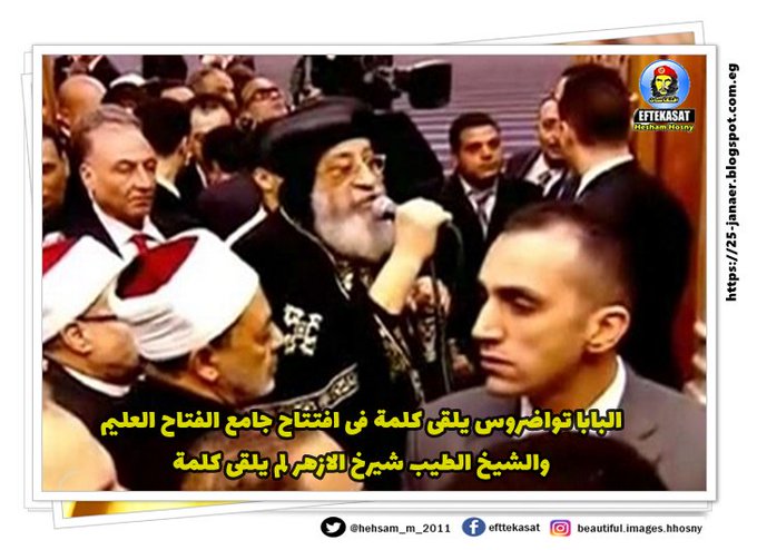 البابا تواضروس يلقى كلمة فى افتتاح جامع الفتاح العليم والشيخ الطيب شيرخ الازهر لم يلقى كلمة