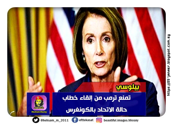 بيلوسي تمنع ترمب من إلقاء خطاب حالة الاتحاد بالكونغرس "أكتب إليك لإبلاغك بأن مجلس النواب لن ينظر في قرار يسمح بإلقاء الرئيس لخطاب حالة الاتحاد داخل المجلس حتى يعاد فتح الحكومة"
