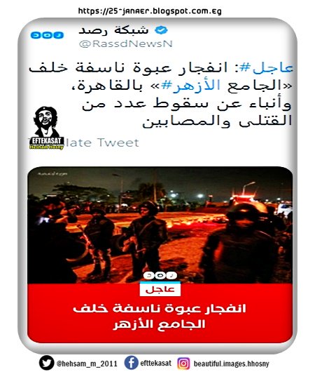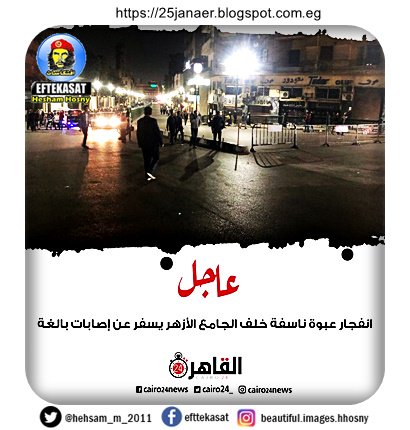 شبكة رصد #عاجل: انفجار عبوة ناسفة خلف «الجامع #الأزهر» بالقاهرة، وأنباء عن سقوط عدد من القتلى والمصابين