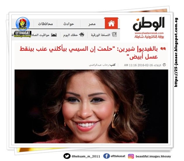 يذكر أن الفنانة "شيرين" خلال برومو "العاشرة " قالت إني شفت الرئيس السيسي في منامي بيأكلني عنب، كان بينقط عسل أبيض".