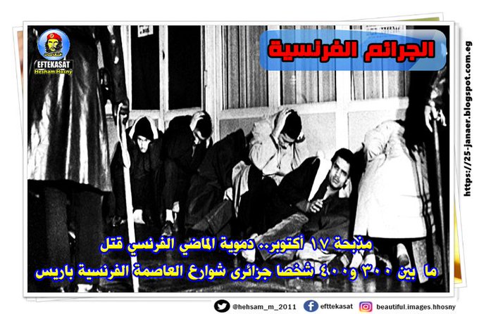 بالصور ..الجرائم الفرنسية مذبحة 17 أكتوبر.. دموية الماضي الفرنسي قتل ما بين 300 و400 شخصا جزائرى بشوارع العاصمة الفرنسية باريس