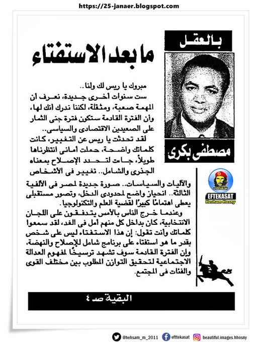 مقالة كاتبها مصطفى بكرى فى عام ١٩٩٢ مع الولاية الثالثة لمبارك مبروك ياريس لك ولنا ست سنوات اخرى جديدة لتكون فترة جنى الثمار