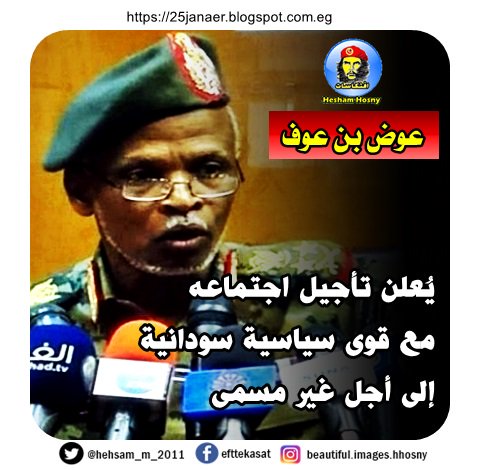 الفريق أول عوض بن عوف يُعلن تأجيل اجتماعه مع قوى سياسية سودانية إلى أجل غير مسمى.