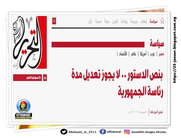 جريدة الدستور بنص الدستور .. لا يجوز تعديل مدة رئاسة الجمهورية -=- فى جميع الأحوال، لا يجوز تعديل النصوص المتعلقة بإعادة إنتخاب رئيس الجمهورية، أو بمبادئ الحرية، أوالمساواة، ما لم يكن التعديل متعلقاً بالمزيد من الضمانات