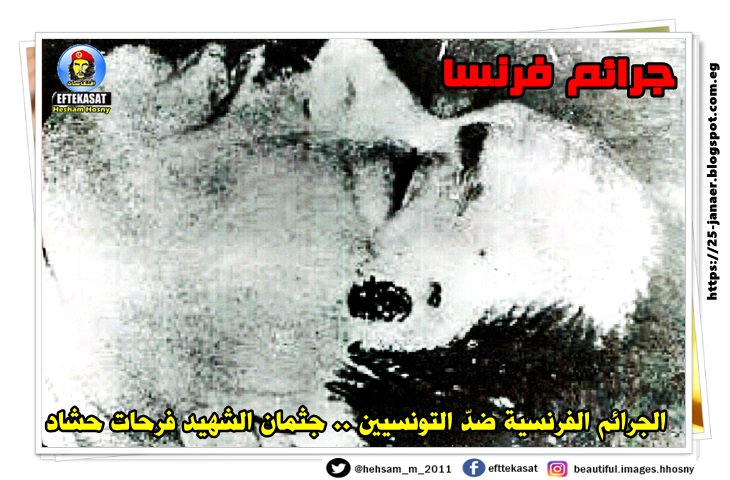 الجرائم الفرنسية ضدّ التونسيين جثمان الشهيد فرحات حشاد حيث اغتالت فرحات حشاد أمين عام اتحاد الشغل والهادي شاكر أمين مال الحزب الحرّ الدستوري