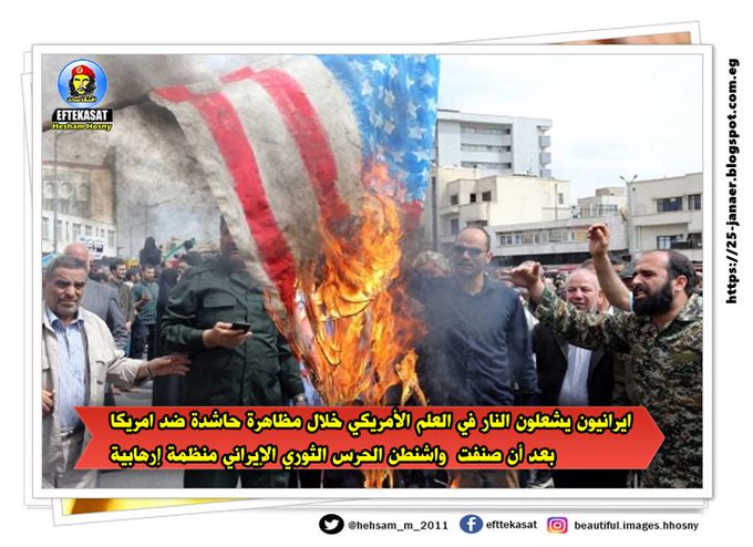 ايرانيون يشعلون النار في العلم الأمريكي خلال مظاهرة حاشدة ضد امريكا بعد أن صنفت واشنطن الحرس الثوري الإيراني منظمة إرهابية