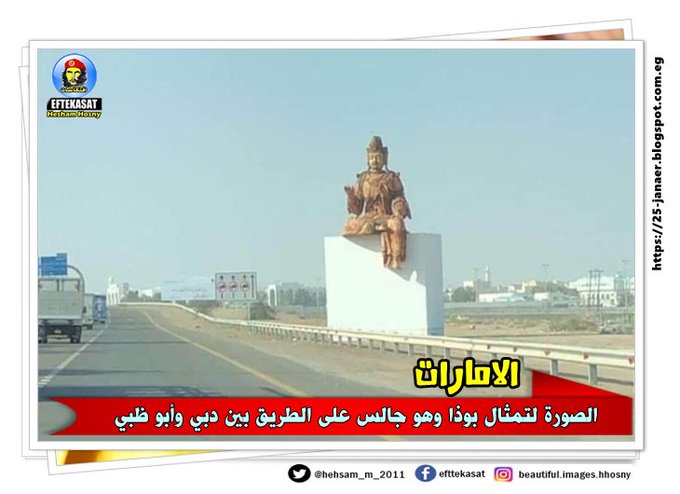 الامارات الصورة لتمثال بوذا وهو جالس على الطريق بين دبي وأبو ظبي