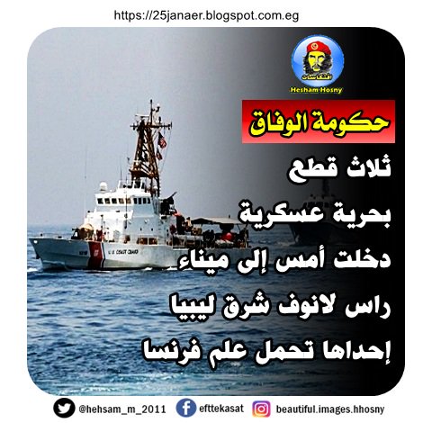 حكومة الوفاق ثلاث قطع بحرية عسكرية دخلت أمس إلى ميناء راس لانوف شرق ليبيا إحداها تحمل علم فرنسا