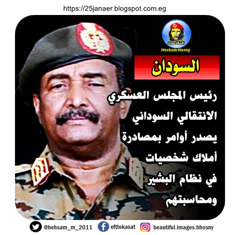 أصدر الرئيس الجديد للمجلس الانتقالي بالسودان، الفريق أول عبد الفتاح البرهان قرارا تجري بموجبه مصادرة أملاك شخصيات في نظام الرئيس السابق عمر البشير ومحاسبتهم.