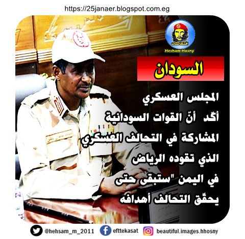 المجلس العسكري أكّد أنّ القوات السودانية المشاركة في التحالف العسكري الذي تقوده الرياض في اليمن "ستبقى حتى يحقّق التحالف أهدافه