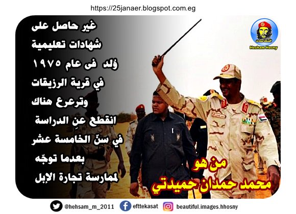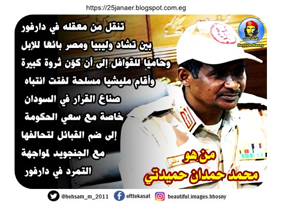 قائد قوة الدعم السريع التى تتألف من أكثرمن 30 ألف عنصر وجرى تسليحها بشكل جيد على نحو ينافس قوات الجيش البرية كما أن البشير عزز من نفوذها في خلق مركز قوة موازٍ للجيش حتى يتفادى إمكانية حدوث انقلاب عسكري