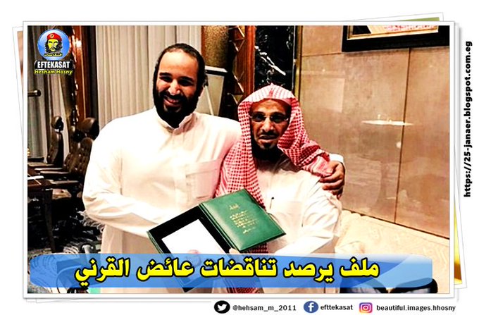 وخرج القرني في عدة خطابات مادحاً ولي العهد السعودي، متناسياً ما فعله بمئات الدعاء والنشطاء، وسياساته التي خلقت أزمات عالمية للمملكة، إذ قال في حديث سابق له: إن "كلمات بن سلمان تسطَّر بماء من ذهب، وتبعث روح الأمل لكل سعودي".