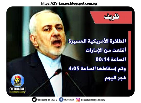 وزير الخارجية الإيراني الطائرة الأمريكية المسيرة أقلعت من الإمارات الساعة 00:14 وتم إسقاطها الساعة 4:05 فجر اليوم