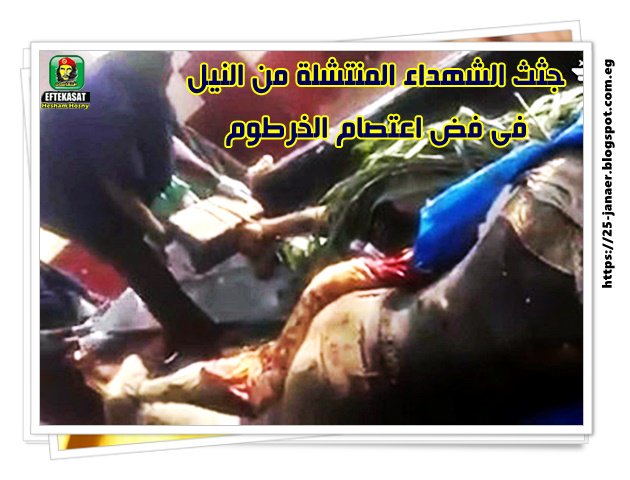 بالصورة ..جثث الشهداء المنتشلة من النيل فى فض اعتصام الخرطوم وفى الصورة ارجل الشهيد مربوط بها حجارة