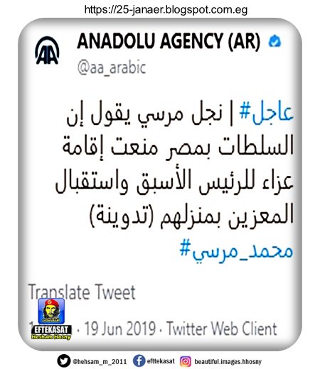 نجل مرسي يقول إن السلطات بمصر منعت إقامة عزاء للرئيس #محمد_مرسيواستقبال المعزين بمنزلهم (تدوينة)