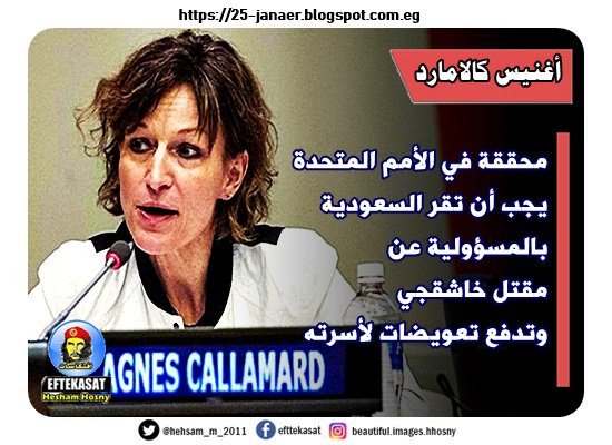 أغنيس كالامارد محققة في الأمم المتحدة يجب أن تقر السعودية بالمسؤولية عن مقتل خاشقجي وتدفع تعويضات لأسرته