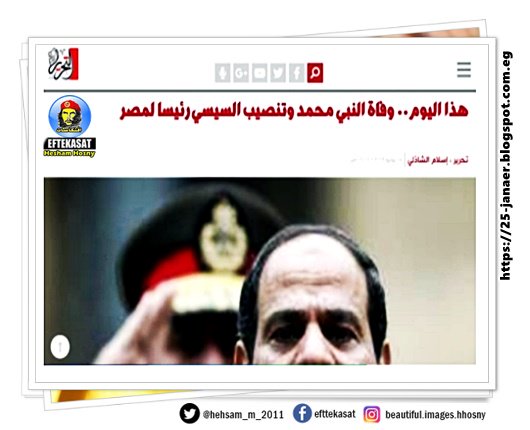موقع الدستور بقيادة محمد الباز يجمع السيسي والنبي محمد في عنوان مثير للجدل -=- هذا اليوم... وفاة النبي محمد وتنصيب السيسي رئيسا لمصر