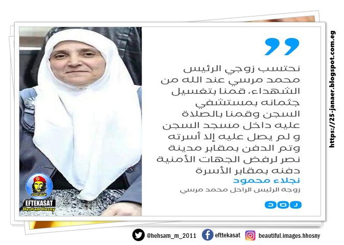 زوجة الرئيس الراحل #محمد_مرسي: «أحتسبه عند الله من الشهداء»