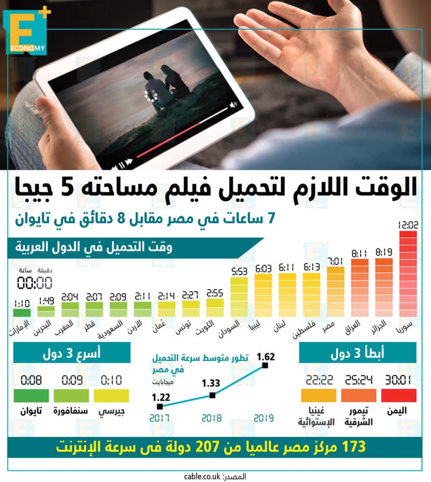 متوسط الوقت اللازم لتحميل فيلم مساحته 5 جيجا.. 7 ساعات في مصر مقابل 8 دقائق قي تايوان