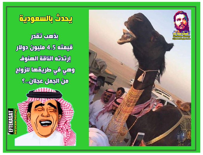 يحدث بالسعودية بذهب تقدر قيمته ٤.٥ مليون دولار إرتدته الناقة الهنوف وهي في طريقها للزواج من الجمل عجلان..؟