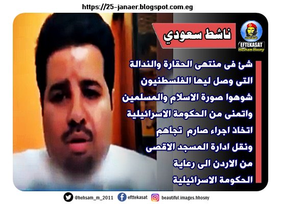 عار العار السعودى هذا ما قاله ناشط سعودي في حديثه لقناة عبرية -=- شئ فى منتهى الحقارة والندالة التى وصل ليها الفلسطنيون شوهوا صورة الاسلام والمسلمين واتمنى من الحكومة الاسرائيلية اتخاذ اجراء صارم تجاهم ونقل ادارة المسجد الاقصى من الاردن الى رعاية الحكومة الاسرائيلية
