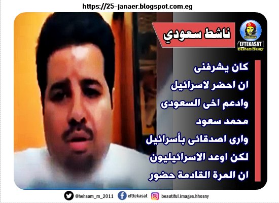 هذا ما قاله ناشط سعودي في حديثه لقناة عبرية -=- كان يشرفنى ان احضر لاسرائيل وادعم اخى السعودى محمد سعود وارى اصدقائى بأسرائيل لكن اوعد الاسرائيليون ان المرة القادمة حضور