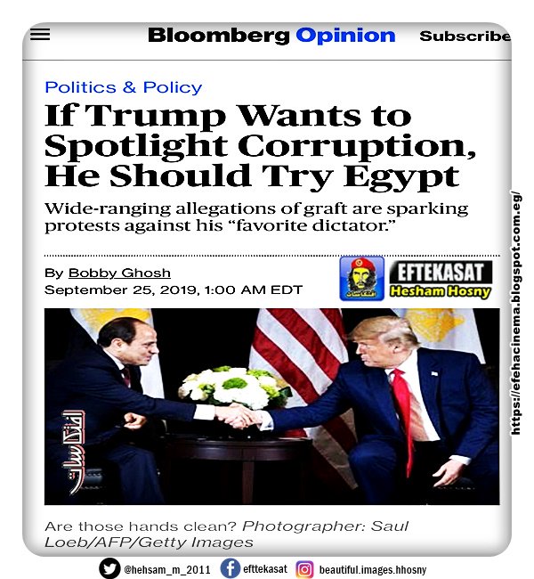 بلومبرج : إذا أراد ترامب تسليط الضوء على الفساد فلينظر إلى مصر. فالاتهامات لديكتاتوره المفضل أشعلت شرارة احتجاجات ضده